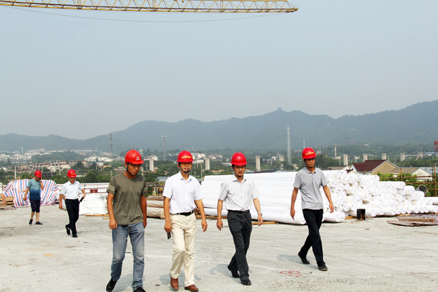 ??? 8月11日,宣城市住建委黨組書記、主任盛浩,副主任袁忠國一行察看六分公司承建的宣城水陽江工程。