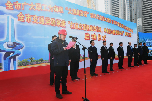 ??? 儀式上,賈玉良主任致辭。2019年是新中國成立70周年,是打造“四個中心”,建設“大強美富通”現(xiàn)代化國際大都市的重要一年,交通人要不負重托,不辱使命,在全市交通運輸系統(tǒng)“打贏交通樞紐攻堅戰(zhàn),爭當省會建設排頭兵”勞動競賽活動中,把勞動競賽和工程建設緊密結合起來,擔當作為抓落實,攻堅克難求突破,推動交通事業(yè)繼續(xù)走在前列,實現(xiàn)人民滿意交通再上新臺階。