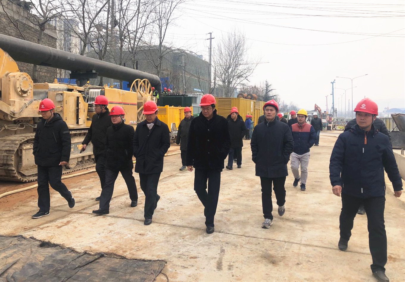 ??? 2月19日下午,集團(tuán)黨委副書記、總經(jīng)理牟曉巖,副總經(jīng)理呂守明、馬烽察看五分公司承建的順河快速路南延建設(shè)工程,并慰問春節(jié)期間奮斗在施工一線的建設(shè)者。