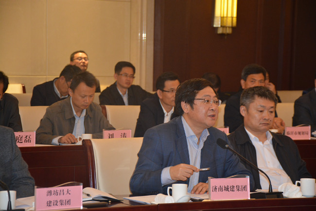 ??? 10月25日,山東省副省長(zhǎng)劉強(qiáng)在臨沂市主持召開了山東省建筑業(yè)情況調(diào)研座談會(huì)。省住建廳廳長(zhǎng)王玉志、省金融辦主任劉曉、人民銀行濟(jì)南分行行長(zhǎng)周逢民、山東銀保監(jiān)局(籌)副局長(zhǎng)邢安鋒、省城鎮(zhèn)化辦公室專職副主任宋錫慶,臨沂市市長(zhǎng)孟慶斌、副市長(zhǎng)常紅軍、市政府秘書長(zhǎng)解紅日等參加了會(huì)議。集團(tuán)作為受邀五家省內(nèi)大型企業(yè)之一參加會(huì)議,牟曉巖總經(jīng)理出席會(huì)議并作了匯報(bào)交流。