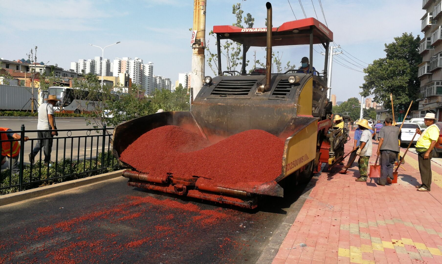 劉長山路慢車道彩色瀝青攤鋪全面展開