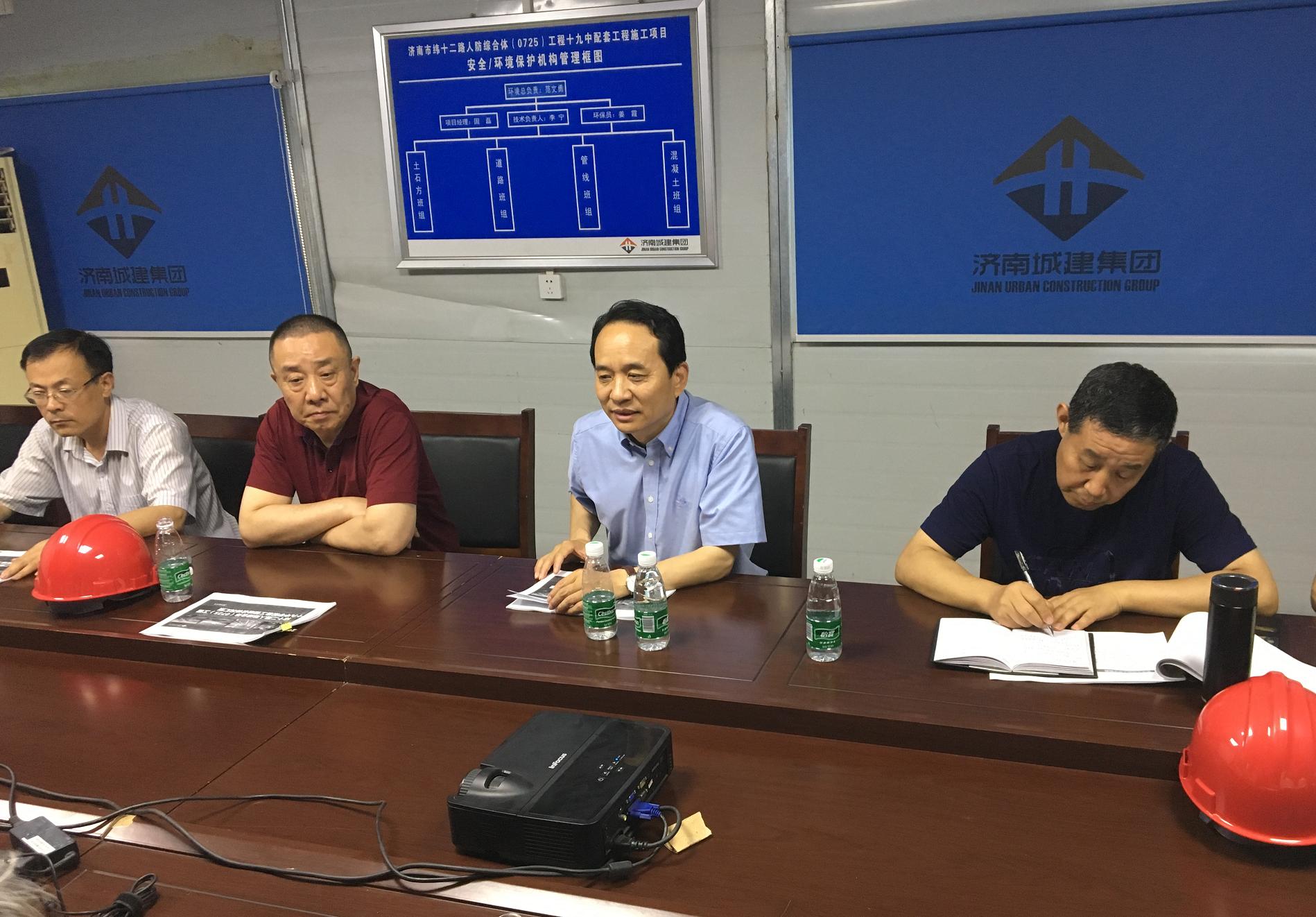 ??? 楊慶緒主任在項目部詳細聽取了工程進展、主體施工方案、質(zhì)量安全保證措施等情況匯報,對工程進度及現(xiàn)場安全文明施工所采取的舉措給予充分肯定。他對下一步工作提出要求,一是安全文明施工措施要落實到位,嚴格按照建設(shè)工程揚塵污染治理規(guī)定施工;二是科學(xué)組織,加強管理,做好雨季、酷暑施工安全防范措施,禁止違規(guī)操作,把好施工質(zhì)量關(guān)、安全關(guān);三是積極協(xié)調(diào)各方關(guān)系,保證工程順利進行。