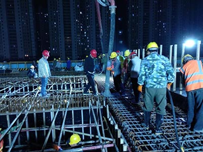 ??? 分公司及項(xiàng)目部高度重視本次澆筑作業(yè)。項(xiàng)目部在前期鋼筋模板施工過程中,主動(dòng)邀請(qǐng)質(zhì)監(jiān)站、設(shè)計(jì)單位、項(xiàng)目管理單位前來指導(dǎo)施工,指出問題,提前解決,從而保證后期順利通過聯(lián)合驗(yàn)收。澆筑前夕,項(xiàng)目部組織召開箱梁混凝土澆筑策劃會(huì),明確責(zé)任分工,合理安排工序,與混凝土攪拌站溝通制定切實(shí)可行的措施保證連續(xù)澆筑。為保證澆筑質(zhì)量,在混凝土澆筑前對(duì)支架、模板、鋼筋、預(yù)埋件、預(yù)應(yīng)力筋位置進(jìn)行仔細(xì)復(fù)查,并對(duì)交通組織、澆筑順序和混凝土塌落度檢測(cè)、溫度控制等具體細(xì)節(jié)認(rèn)真開展安全技術(shù)交底工作。全體人員凝心聚力,攻堅(jiān)克難,保質(zhì)保量地完成了此次澆筑任務(wù)?!?