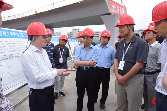 ??? 5月7日下午,贛州市副市長、高鐵新區(qū)建設(shè)領(lǐng)導(dǎo)小組組長何福洲冒雨前往二分公司承建的贛州市客家大道西延高架段施工現(xiàn)場實地調(diào)研。贛州市高鐵新區(qū)建設(shè)領(lǐng)導(dǎo)小組副組長兼辦公室主任、市鐵辦主任邱世祿,市城鄉(xiāng)建設(shè)局局長張龍彪,市城鄉(xiāng)規(guī)劃局局長廖光斌,贛州城投集團(tuán)董事長鄭禮順,二分公司副經(jīng)理張海龍等全程陪同。