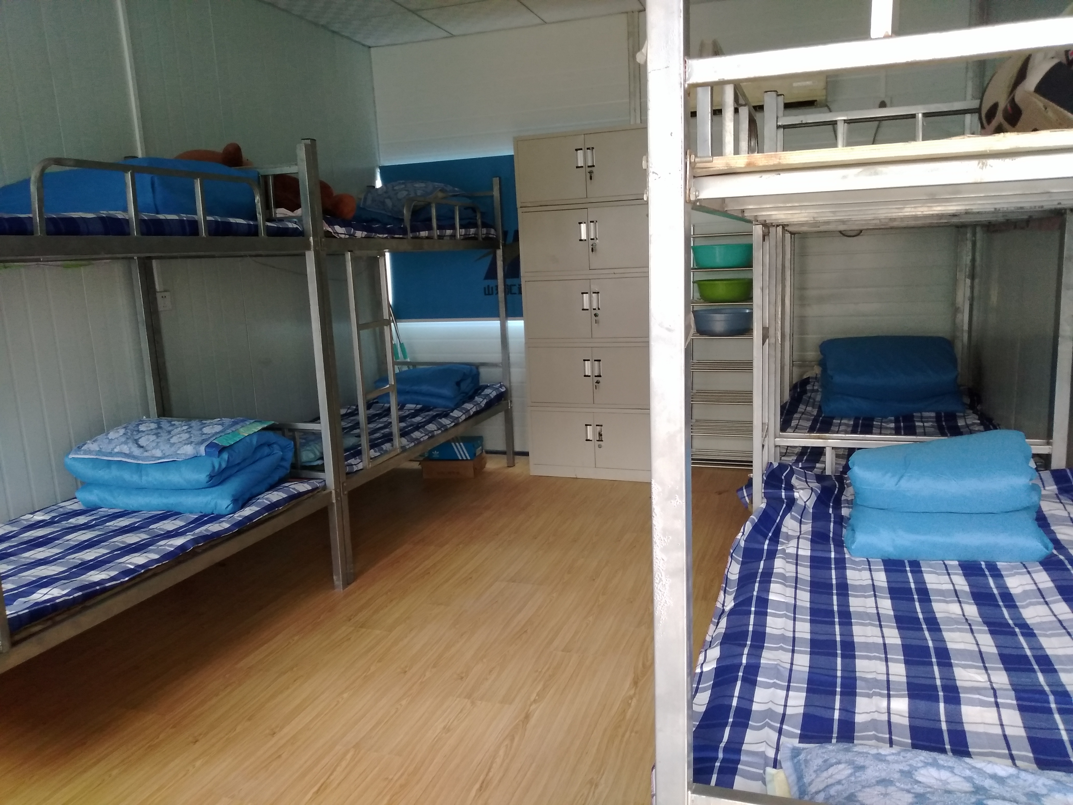 ??? 為便于勞務(wù)人員日常管理,項(xiàng)目部推行勞務(wù)人員生活區(qū)集中設(shè)置,民工生活集中管理,設(shè)置大食堂,統(tǒng)一做飯,集中用餐模式。項(xiàng)目生活區(qū)實(shí)施公寓化管理,勞務(wù)人員生活區(qū)域使用門禁,實(shí)行刷卡進(jìn)入;民工生活區(qū)設(shè)置水房、男女衛(wèi)生間、洗浴間等生活設(shè)施,同時(shí)宿舍內(nèi)為勞務(wù)人員統(tǒng)一配發(fā)被褥枕套、衣櫥鞋廚等生活用品,為他們提供了舒適溫馨的住宿環(huán)境。