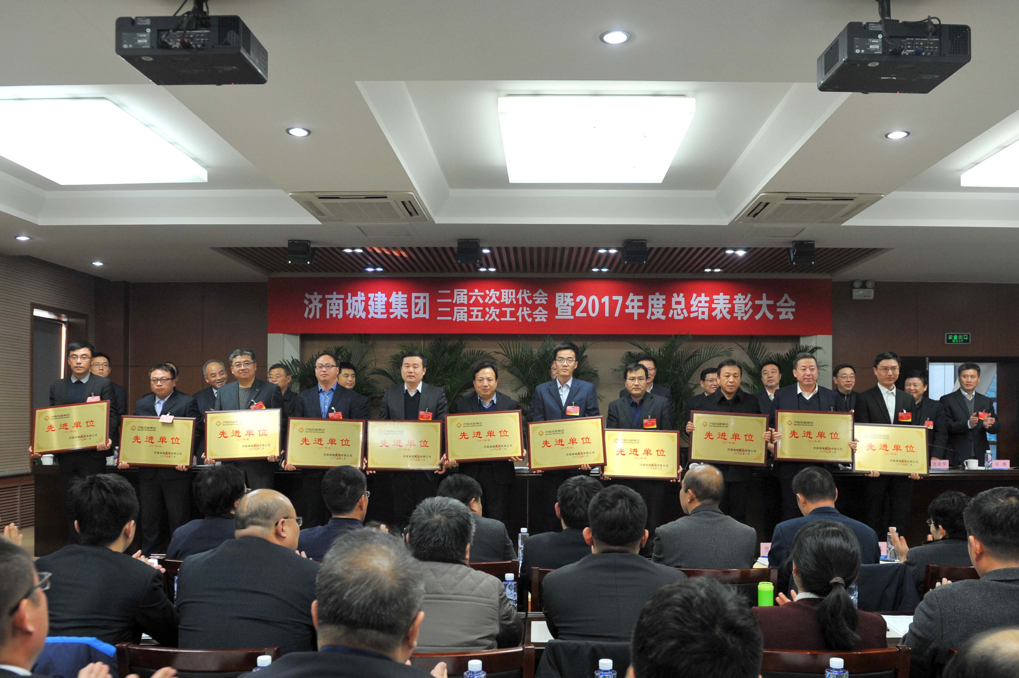 ??? 在2017年度總結(jié)表彰大會上,宣讀了集團黨委《關(guān)于表彰2017年度先進基層黨團組織和先進個人的決定》、集團《關(guān)于表彰2017年度先進單位、先進集體和先進個人的決定》及集團工會《關(guān)于表彰2017年度先進分會和先進工會小組及工會積極分子的決定》。2017年度先進單位、集體及個人代表上臺領(lǐng)取了獎牌和榮譽證書。會議提出,各單位要以先進典型為榜樣,充分發(fā)揚“拼搏、創(chuàng)新、團隊、奉獻”的城建鐵軍精神,凝心聚力,開拓創(chuàng)新,為實現(xiàn)集團新的跨越發(fā)展做出更大貢獻。