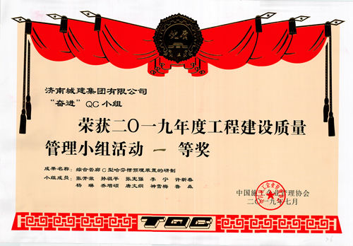 集團(tuán)“奮進(jìn)”QC小組榮獲“2019年度工程建設(shè)質(zhì)量管理小組一等獎(jiǎng)”