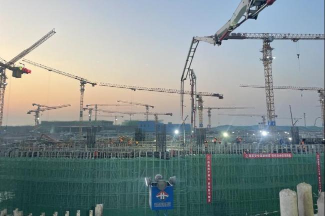 12月5日晚9點30分,集團濟南遙墻機場二期改擴建工程-T2航站樓項目現(xiàn)場燈火通明,東西兩臺泵車左右開弓,歷經(jīng)22小時順利完成8號下穿通道首段主體1400立方米混凝土澆筑,標志著項目建設取得階段性勝利。