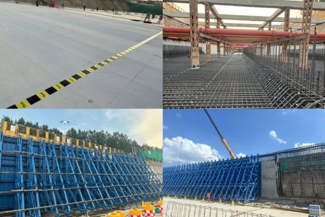鋼筋間距測(cè)量準(zhǔn),質(zhì)量提升源頭控。項(xiàng)目部高度重視工程施工質(zhì)量,密切關(guān)注各工序施工過(guò)程的細(xì)節(jié)管理。鋼筋工程施工過(guò)程中,采用鋼筋間距控制貼,通過(guò)在預(yù)鋪反粘卷材上粘貼專用的間距控制貼,實(shí)現(xiàn)了鋼筋間距的精度控制,確保了鋼筋布置的準(zhǔn)確性和規(guī)范性。在明挖隧道結(jié)構(gòu)施工中,采用組合式定制側(cè)墻大鋼模,提升側(cè)墻實(shí)體質(zhì)量,大幅降低工程材耗,保證結(jié)構(gòu)“線條流暢、棱角分明,內(nèi)實(shí)外美、不滲不漏”。
