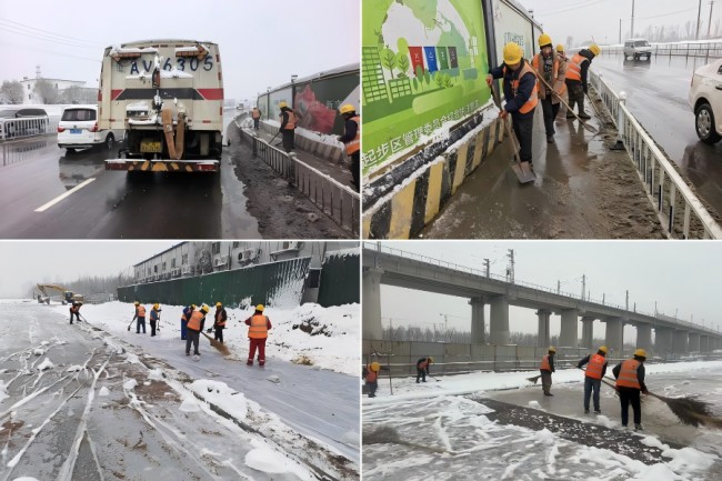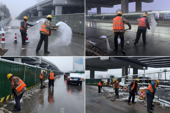 城建六公司黃崗路穿黃隧道項目部及人行天橋項目部針對309國道輔路、幸福寺路等處的積雪結(jié)冰情況,迅速部署,立即組織工人開展掃雪除冰作業(yè)。黨員干部和青年職工帶頭,分工協(xié)作,高效清除通行隱患,保障路段通暢,以快速響應(yīng)和務(wù)實行動守護群眾平安,展現(xiàn)了國企為民服務(wù)的責(zé)任與使命。