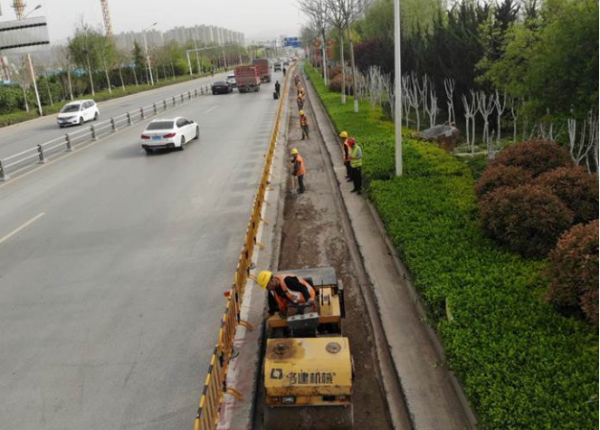 濟南港西路供水管道工程北起港西立交橋下地面道路,途經(jīng)濟南職業(yè)護理學(xué)院,南至齊魯制藥東門,鋪設(shè)一道DN600給水管道,長度3820米,橫穿港西路管線共計21道。4月5日,工程正式開工,原計劃工期60天,因沿線濟南職業(yè)護理學(xué)院急需供水,必須在4月30日之前完成管道鋪設(shè)。時間緊、任務(wù)重,集團迅速調(diào)集精銳力量,科學(xué)部署、統(tǒng)籌策劃,堅持快干快結(jié),采取彈性交通導(dǎo)行措施,最大限度減少對市民出行的影響。